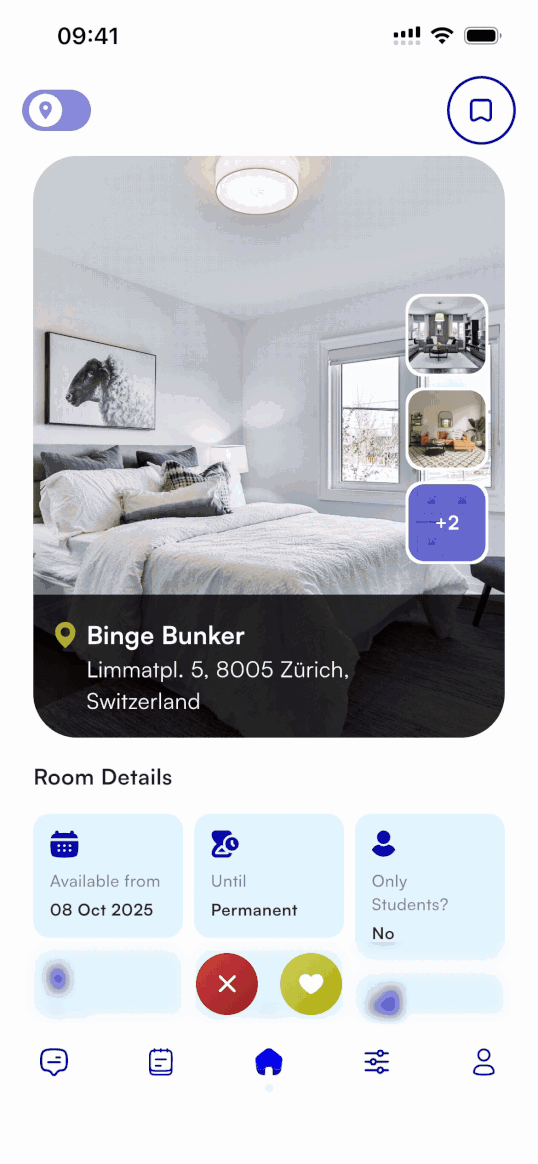 Our simple two-decision interface makes finding a shared flat feel natural — just like or reject. No endless scrolling or complicated forms. Quick, intuitive, and made for how you actually think.