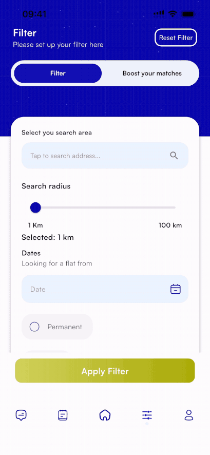 Flatable’s shared-flat filters go beyond rent and location. Choose what really matters — number of roommates, age range, spoken languages, and more. Whether you want a calm space or a social home, our smart filters help you find the environment that feels right for you.